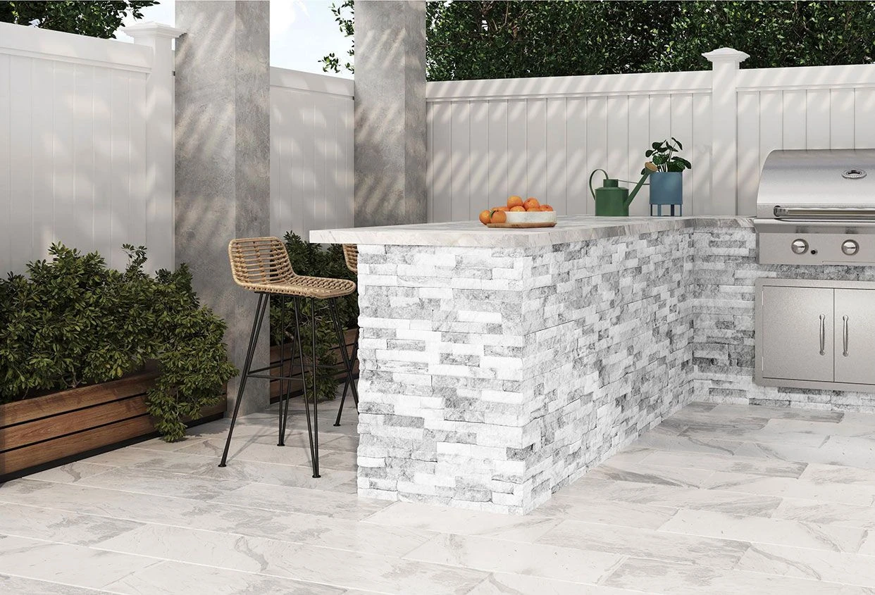 3D панель из натурального камня Кварцит Бело-серый Классик Pharaon