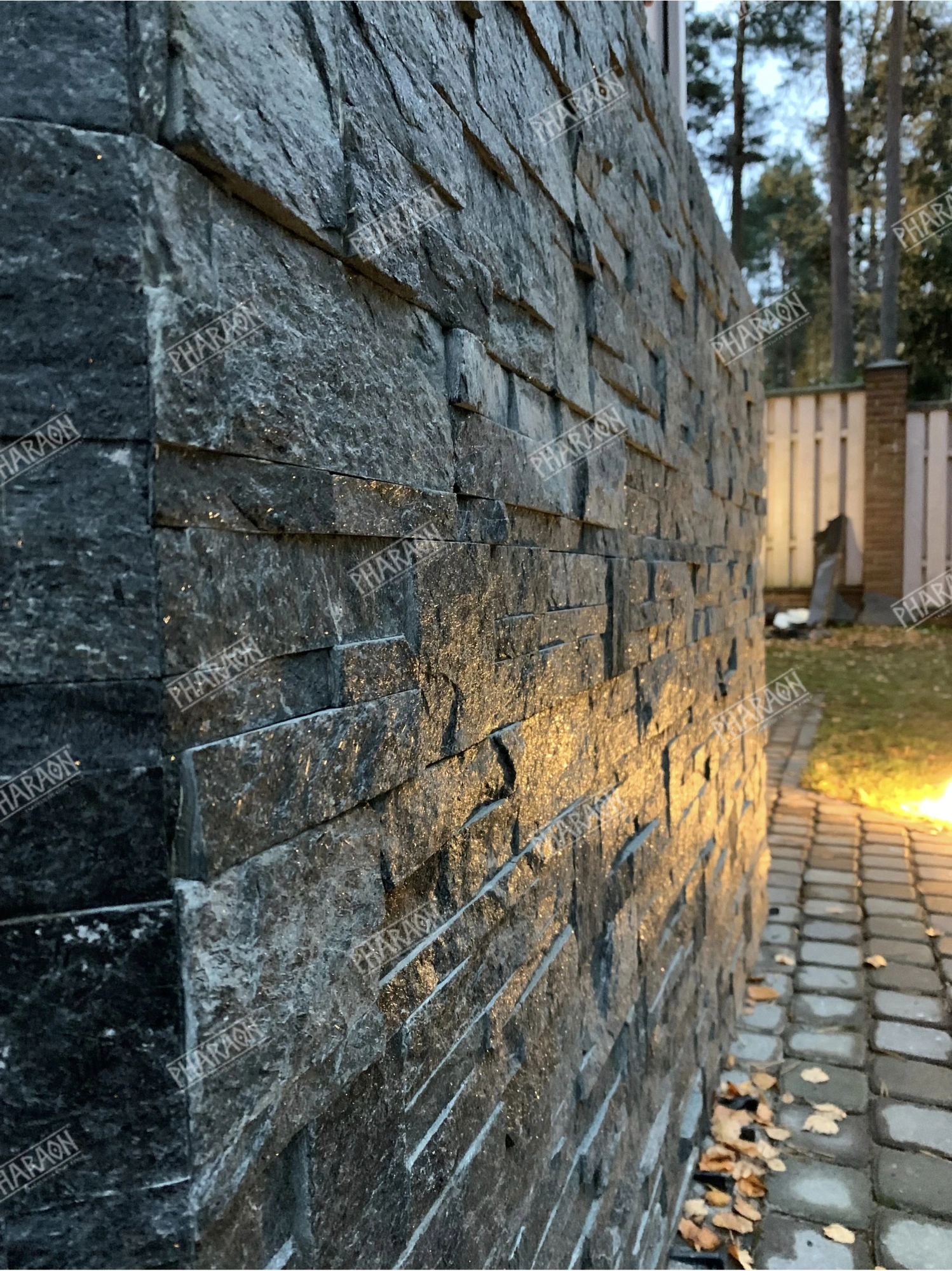 3D панель из натурального камня Кварцит Чёрный Модерн Pharaon