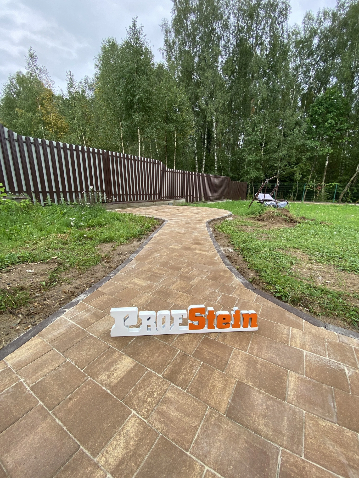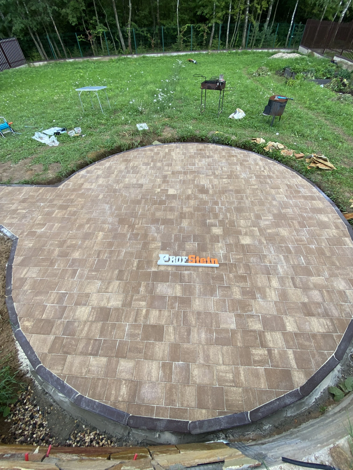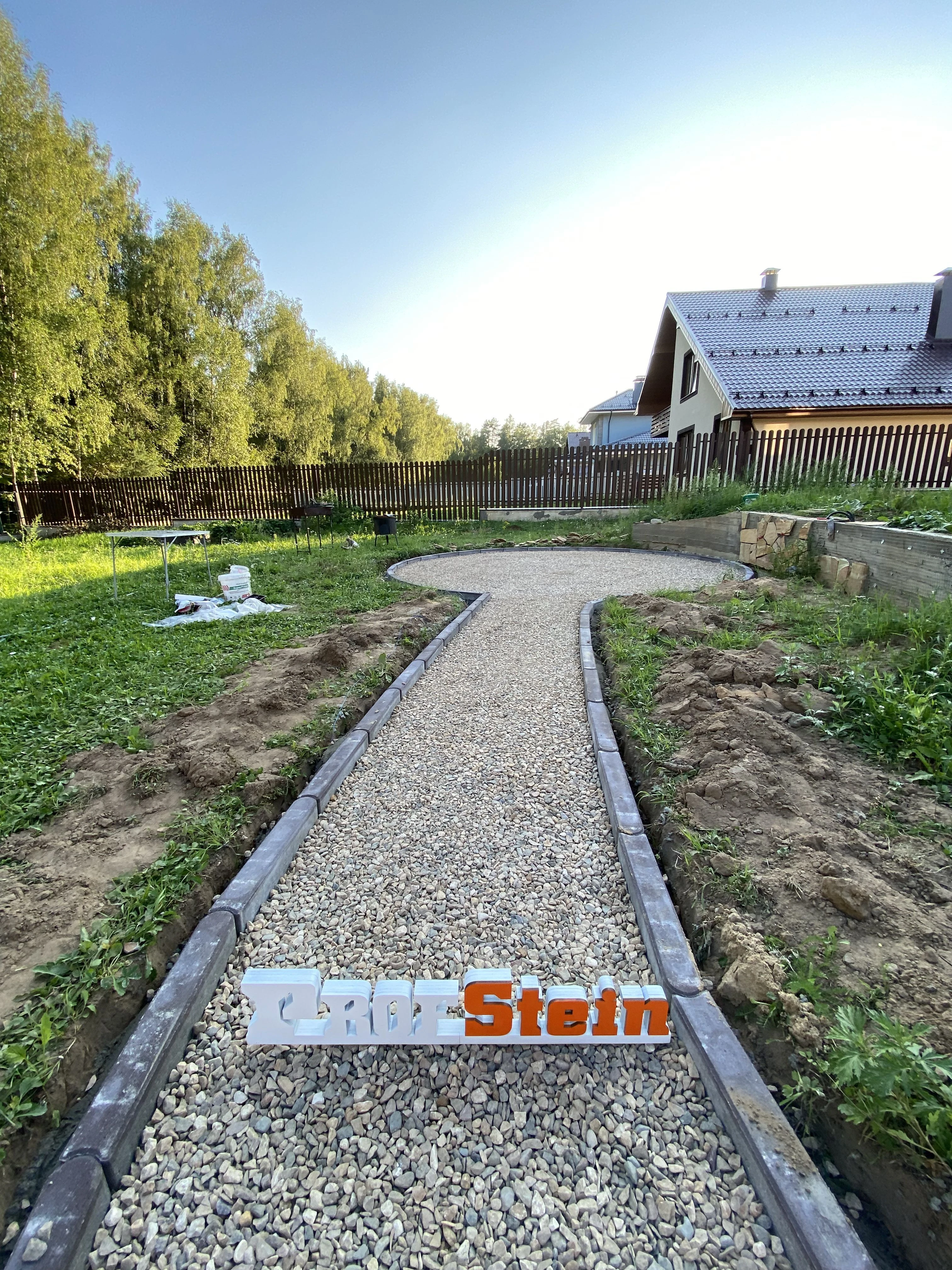 В рамках проекта была поставлена задача создать эстетически привлекательный круг из садового бордюра. Мы предложили решение использовать шарнирный бетонный бордюр от производителя Выбор, который идеально вписывается в общий дизайн.
