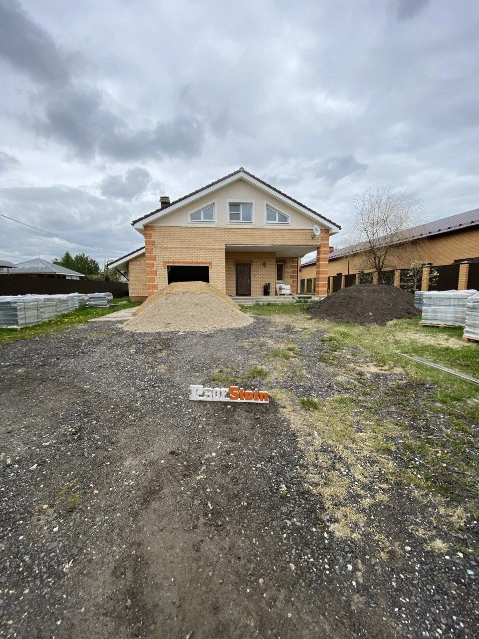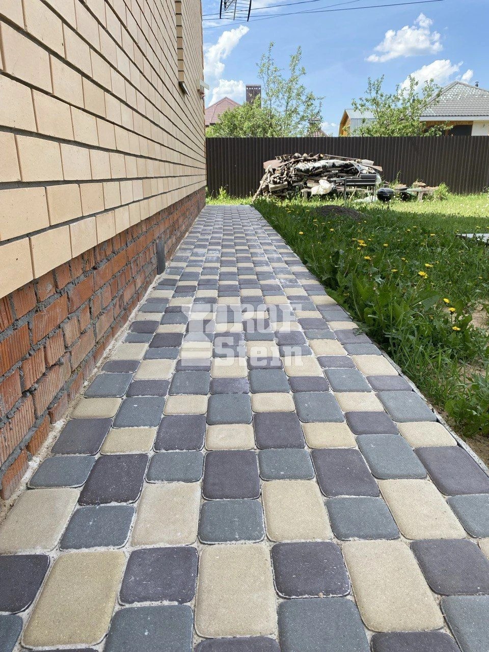 К нам обратился заказчик Александр по рекомендации друга с целью уложить тротуарную плитку. Заказчик заранее приобрел весь необходимый материал, включая тротуарную плитку.Нюанс заключался в том, что плитка была представлена в четырех размерах и трех цветах. Для правильной укладки необходимо следовать раскладке, предоставленной производителем. Наши мастера приложили максимум усилий, подбирая цвета таким образом, чтобы ближе к дому был преобладающий желтый оттенок, а у забора — коричневые тона, при этом строго следуя чертежу раскладки и не оставляя лишних элементов. Мы справились с этой задачей на все 100%.