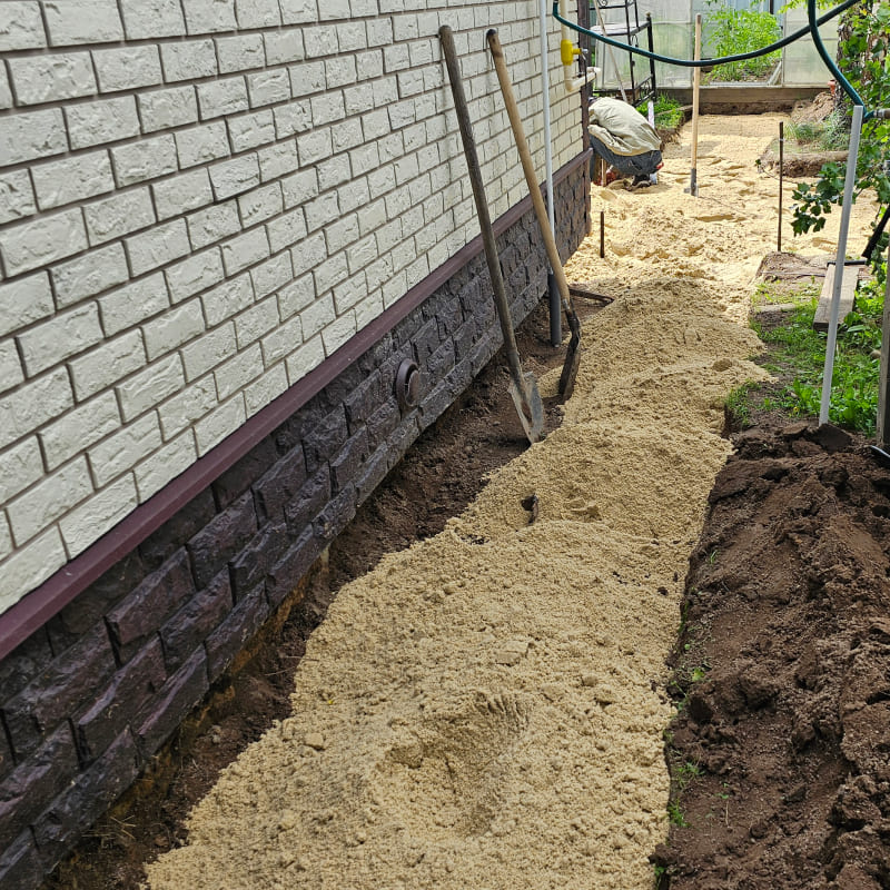 Процесс укладки дренажа